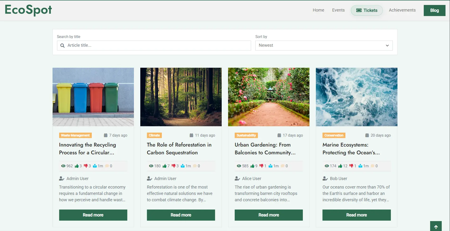By centralizing these elements, EcoSpot provide a comprehensive environment where users can monitor ecological trends, engage with NGO initiatives, and stay informed through credible local research.